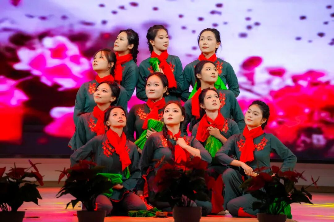 青花艺术团展示舞蹈《喜上枝头》。优美的舞姿、柔和的音乐为全体师生带来一场沉浸式的文化体验。