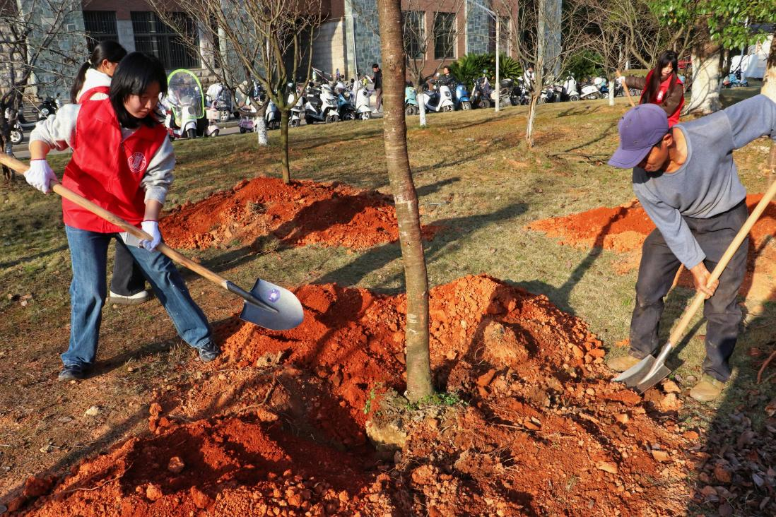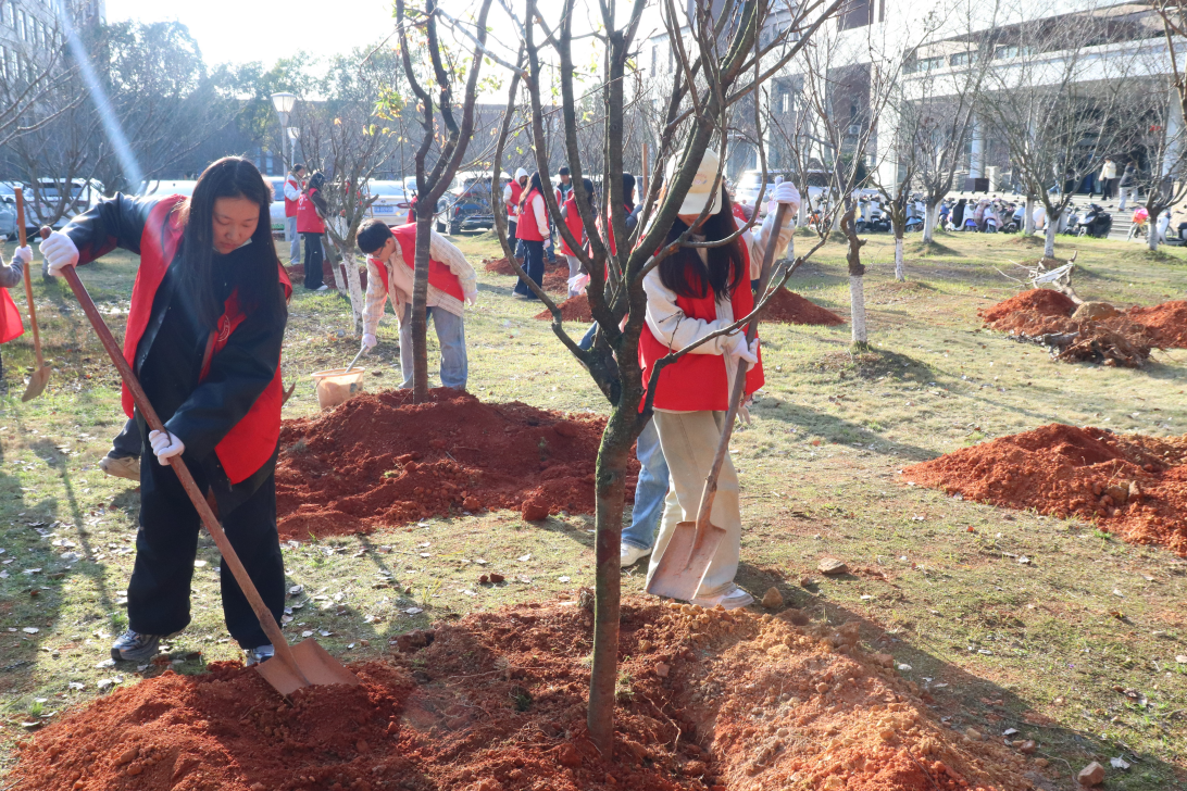 仪式结束后,陈云霞与师生代表一同前往勤学楼前樱花林开展植树活动,以实际行动为美丽校园增添新绿。